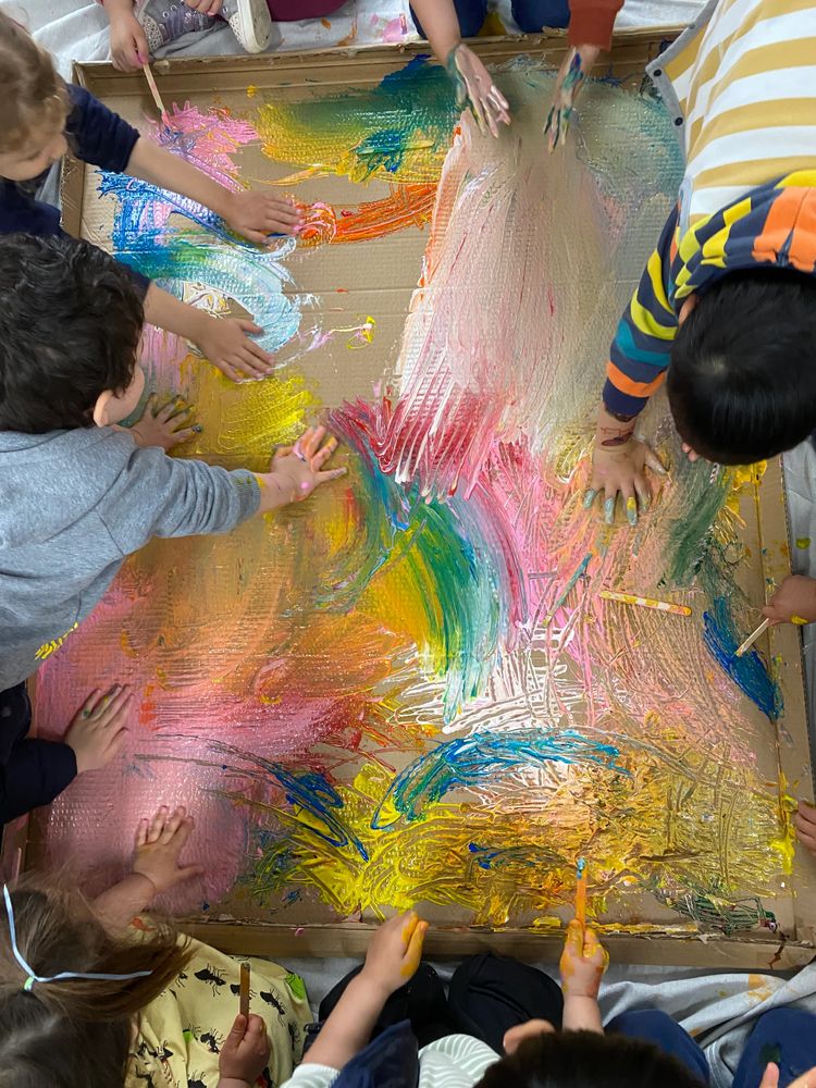 The children are able to connect to art in a many different ways as they explore the colours and textures of all art mediums in a fun, free and interactive manner."